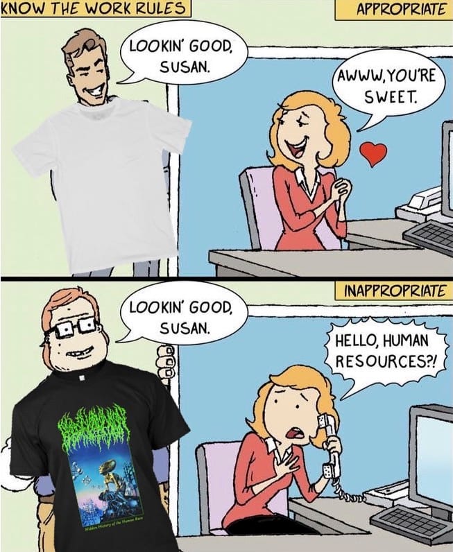 I think there's more of the hustle borrowed than the aesthetic of it. I can point at the 2016-era merch, but it's not like everyone was ripping off hardcore shirts. I think it's just the idea that there are hardcore kids who became graphic designers, and the same thing happened with metal. Especially when it comes to stuff like that run from 2010 to 2016, where everybody had a metal logo, or a black metal version of the shirt—